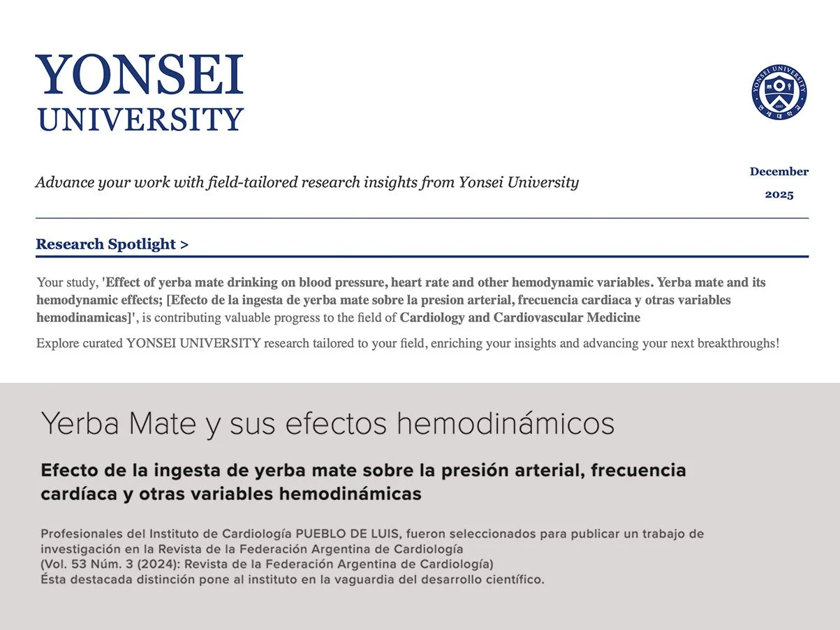 /La Universidad de YONSEI en Seúl, Corea del Sur, destacó como una importante contribución académica, al trabajo efectuado por el Instituto acerca de las acciones del mate sobre la presión arterial y la frecuencia cardíaca. El interés suscitado en el exterior por el trabajo científico, confirma los méritos científicos del mismo.